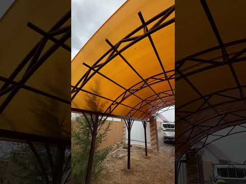 Собрали односкатный арочный навес из поликарбоната для машины скат от соседа