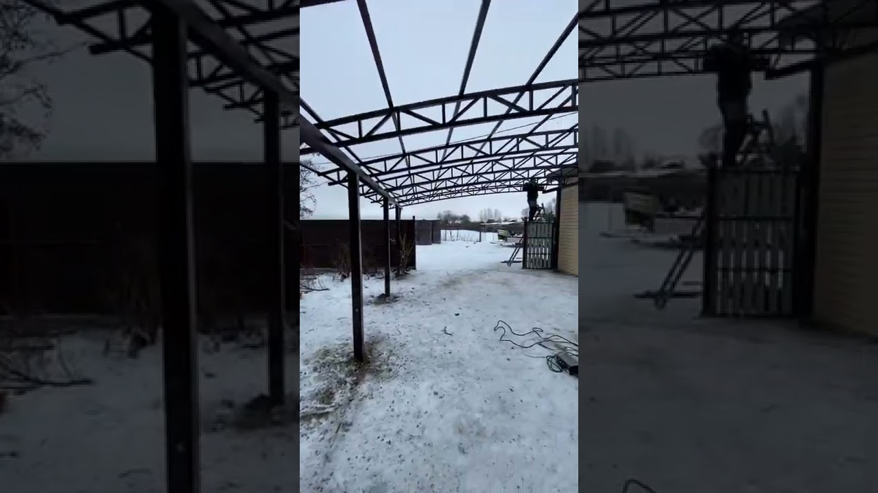 Навесы из поликарбоната Спецкаркас | Приступили к сборке очередного навеса 6*9